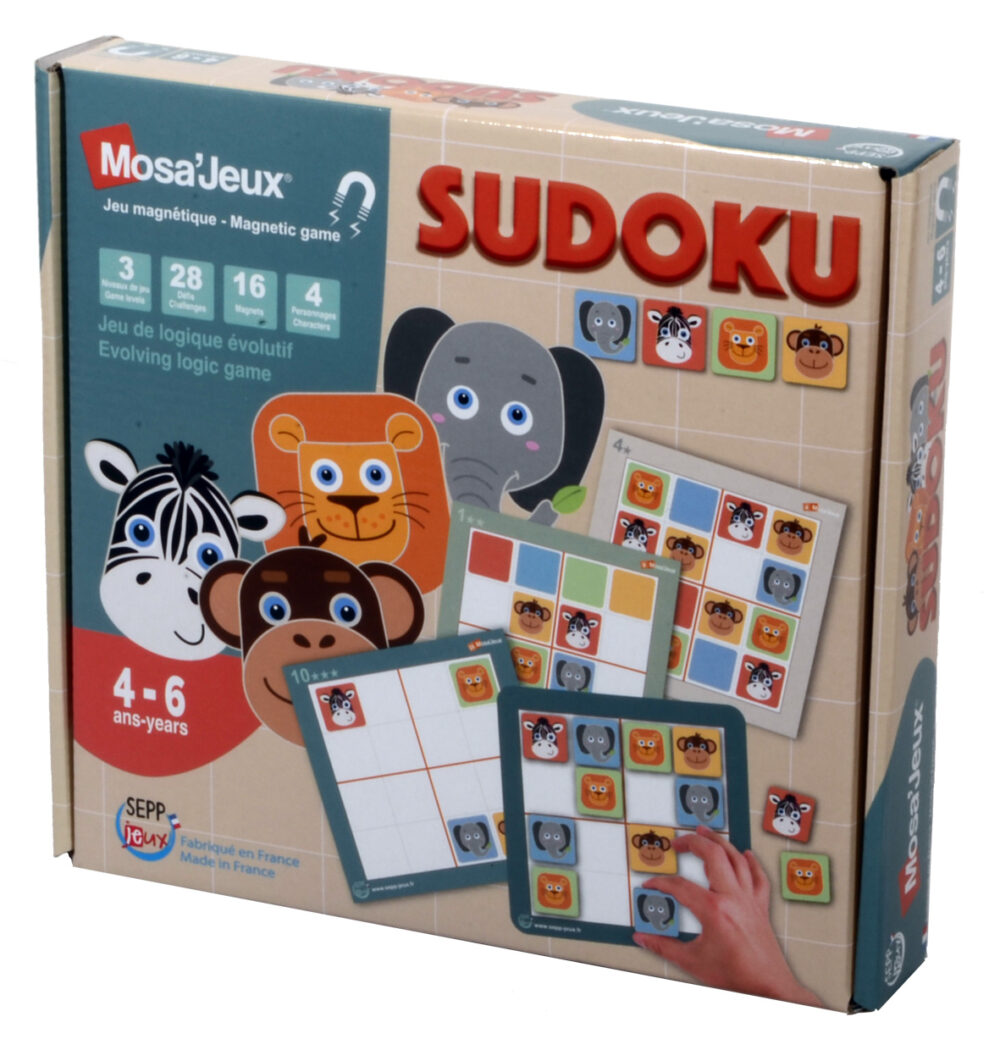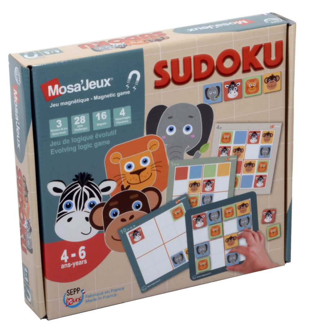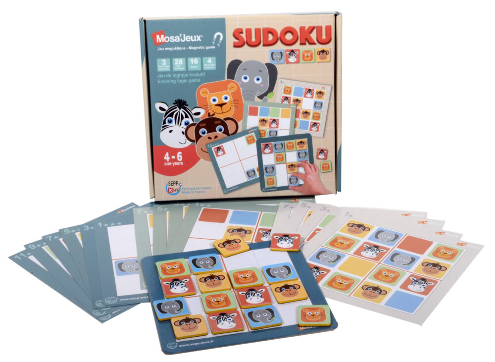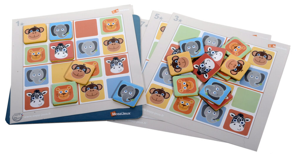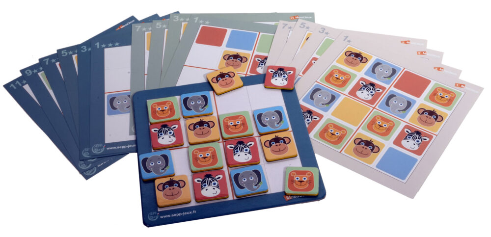 Complète la grille avec 16 jetons animaux en suivant la règle d’or du Sudoku : chaque caractère ne peut apparaître qu’une seule fois dans chaque bloc de 4 cases, dans chaque ligne ou dans chaque colonne.